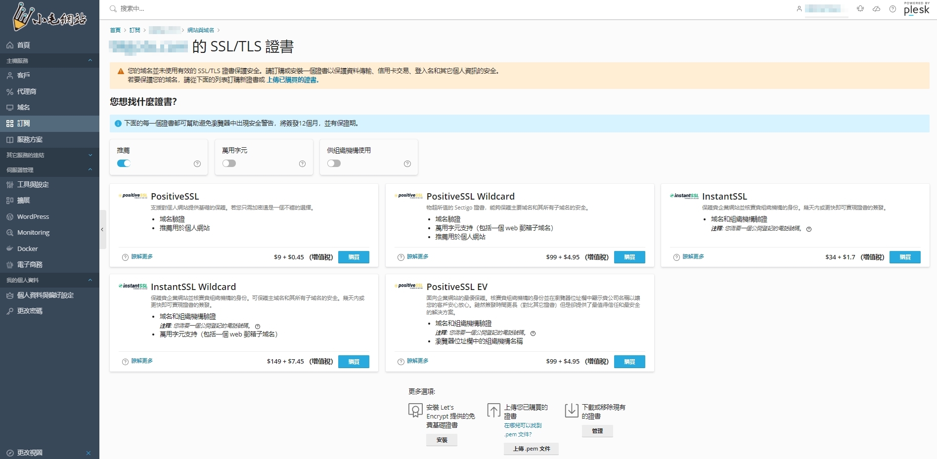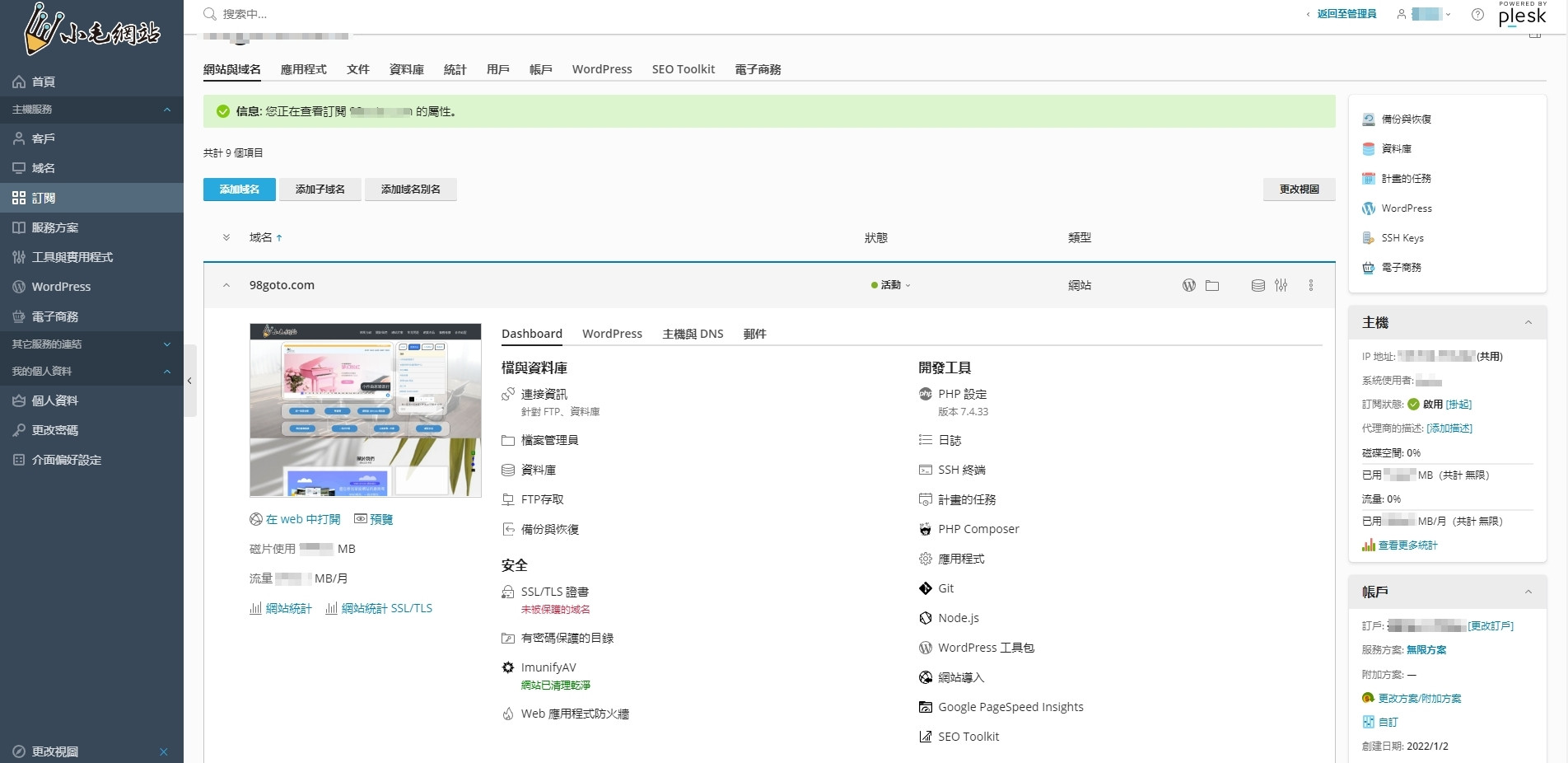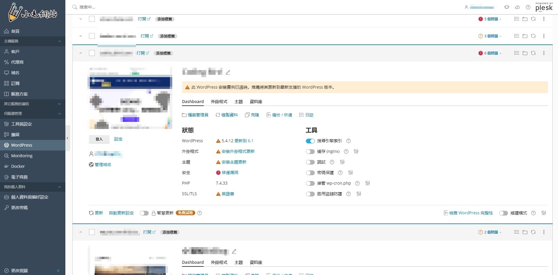 - Plesk 控制台